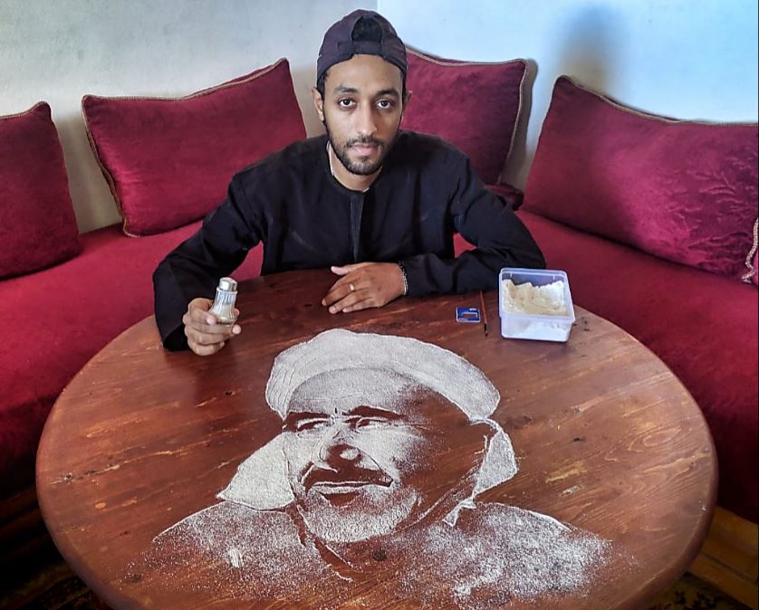 وشكلت الأزمة الصحية الحالية فرصة لاسماعيل لتجديد علاقته مع هواية بدأها وهو في سن الثانية عشرة من عمره. في البداية كان يرسم البورتريهات، بالاستعانة بالأدوات المعروفة في الرسم، بعدها “بدأت أحاول البحث عن أشياء مبتكرة بدل الأقلام العادية، كالأرز والدقيق والعدس وغيرها، لكن كل هذه المواد لم تكن تساعدني بل كانت تجعل الأمر أكثر صعوبة، إلى أن اكتشفت أن الرسم بالملح أسهل وأمتع”.