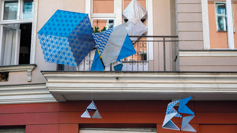 وأوضح مفوضا المعرض اوفول دورموسوغلو ويوانا فارسا، اللذان طلبا من الفنانين إطلاق العنان لمخليتهم: «الشرفات هي مخارج طوارئ، للتنفس وتمضية الوقت في الشمس أو التدخين»، في ظل الحجر المنزلي. ودُعي المتنزهون والفضوليون في برلين، حيث إجراءات الإغلاق أقل صرامة من مقاطعات ألمانية أخرى، إلى رفع رؤوسهم لمشاهدة هذه الأعمال، ومنها سلم مصنوع من أغصان الأشجار، وصور بالأبيض والأسود لأشخاص واقفين على شرفاتهم في أثينا أو قرطبة. وتتضمن إحدى المنشآت أجزاء طويلة من ورق المرحاض على واجهة مبنى تشهد على تهافت الألمان على هذا المنتج الذي بات ثميناً منذ بدء انتشار فيروس «كورونا» المستجد في أوروبا. وأكد المنظمون أن هذه التظاهرة الفنية «من دون ميزانية ومن دون افتتاح ولا حضور، هي نزهة حميمة بحثاً عن مؤشرات حياة وفن»