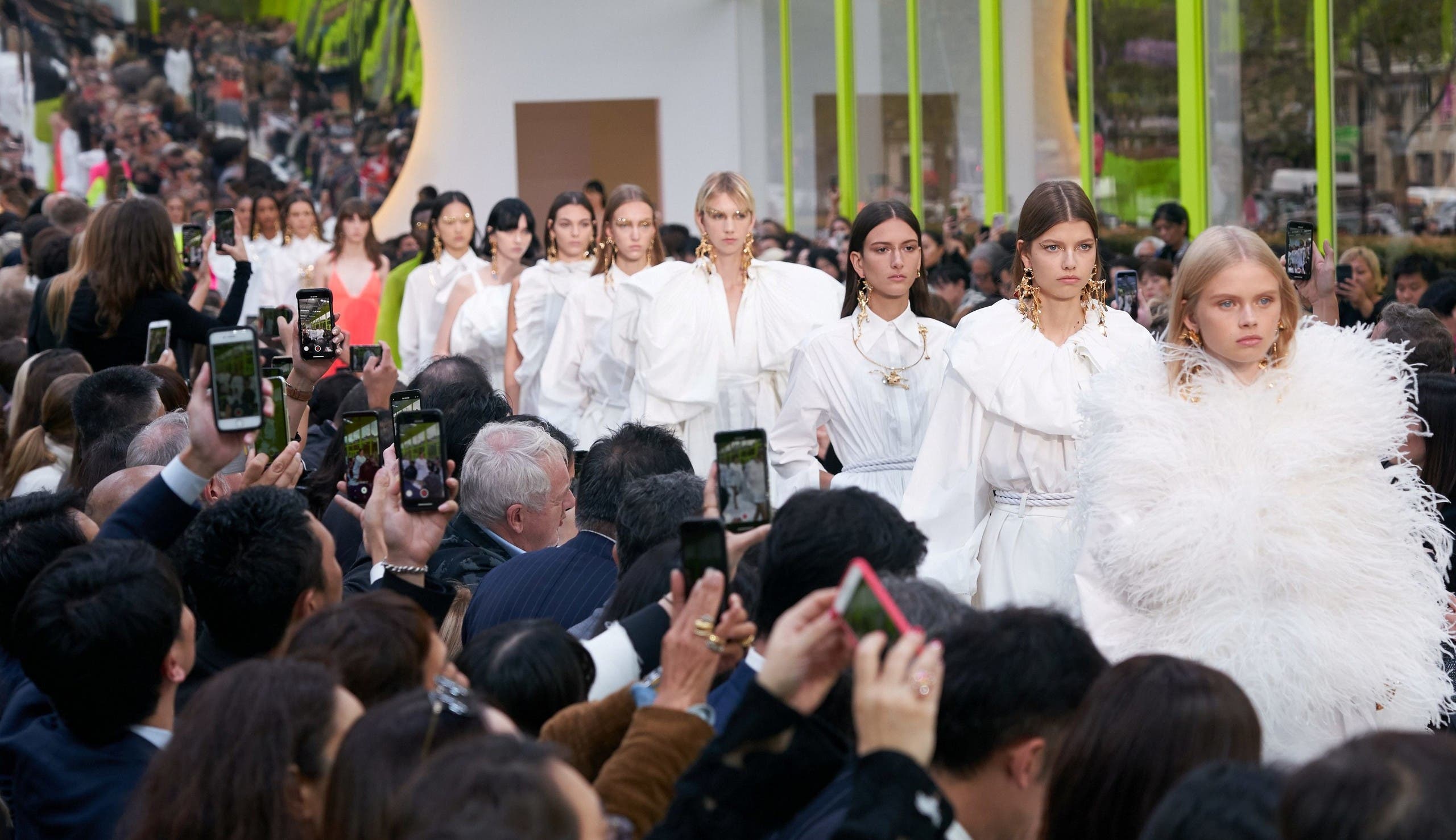 - استهلت دار Valentino عرضها بمجموعة من القمصان البيضاء تنوعت قصاتها بين الرجالية وتلك التي تزينت بالكشاكش ذات الطابع الأنثوي. وقد ترافقت مع أكسسوارات ذهبية مميزة. استوحي منها لإدراج القميص الأبيض ضمن إطلالاتك هذا الصيف.