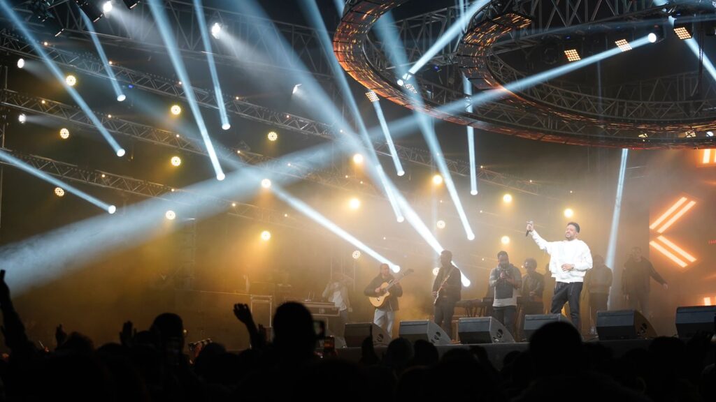 صعد حماقي على خشبة المسرح في كامل أناقته مرددا لأغنية “نفسي ابقي جنوا” وسط عاصفة من هتفافات الإعجاب لألاف المعجبين من مختلف الجنسيات المصرية والعربية .