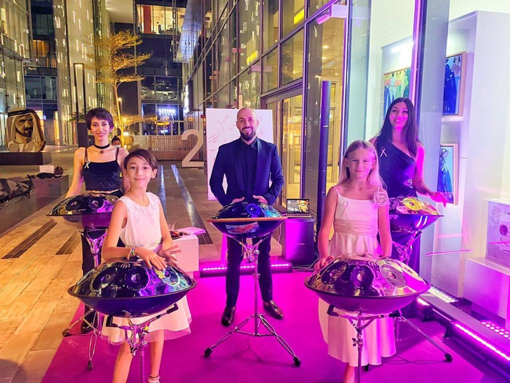 وقدم فريق الموسيقي “HANDPAN” مع أنس الحلبي فقرة موسيقية بالات هاندبان التي تعتبر عنصرا موسيقيا مهما يعالجون بها الأطفال من مرض السرطان.