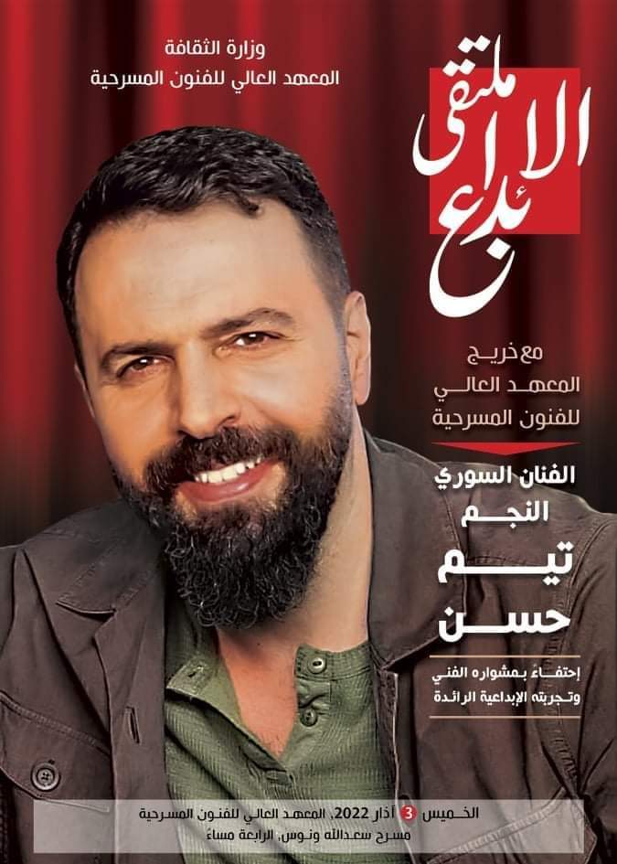 يعود النجم السوري تيم حسن إلى المكان الذي انطلق منه لعالم الفن واحتضن ماضيه وأحبه ولا يزال ولائه الأول له وهو المسرح، إذ سيحل ضيفاً على المعهد العالي للفنون المسرحية يوم الخميس المقبل 3 آذار على مسرح سعد الله ونوس ضمن فعاليات ملتقى الإبداع.