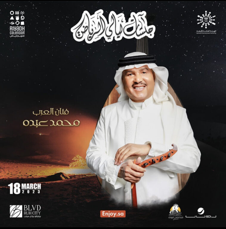 ونشر موقع “روتانا لايف” البوستر الخاص بالحفل، وكتب: “في أجواءٍ ما لها مثيل، وليلة مختلفة، نستمتع مع فنان العرب محمد عبده في جلسة طربية من جلسات ليالي الرياض 18 مارس في محمد عبده أرينا، وتطرح التذاكر يوم الأحد الساعة 6 مساء”.