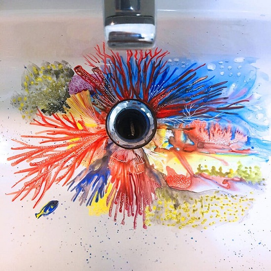 أشارت الرسامة جروسى إلى إنها تلتزم بغسل يديها باستمرار العديد من المرات خلال اليوم للوقاية من كورونا، ومثل العديد من الناس، بدأت تكره فعل ذلك، ولهذا قررت الاستمرار فى رسم الحوض بالزهور والحيوانات وغيرها من الرسومات المختلفة حتى لا يصبح غسل اليدين بالنسبة لها روتين ممل