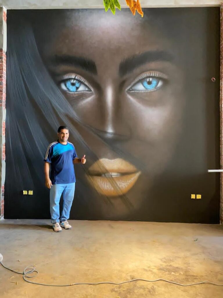 انتهى الفنان التشكيلي حافظ محمد الرضي مؤخراً، من رسم لوحة فنية جديدة وهي عبارة عن بورتريه لوجه فتاة أفريقية، رسمها على جدار مقهى “هاش كافي” في مدينة الأحساء السعودية.
