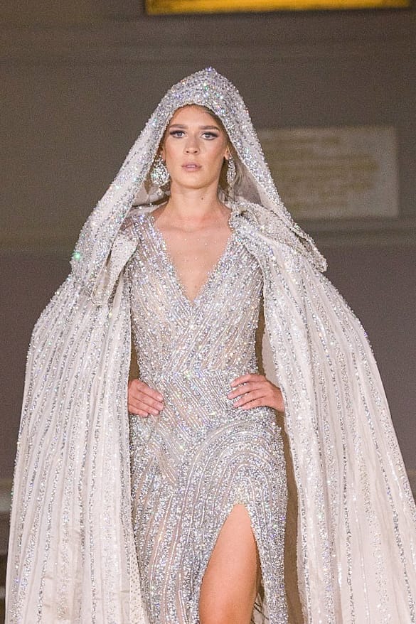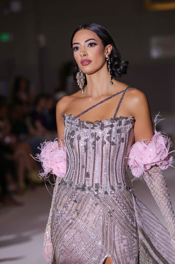 وتألقت 28 عارضة أزياء من مختلف دول العالم منهن فلسطينية ب 35 قطعة فنية من تصميمات البحيري المميزة والذي وقع اختياره للألوان المبهجة الملونة والذهبية لفستان الزفاف باطلالات ملكية كتعبير عن الخروج من سنوات الظلام خلال فترة كورونا والتي شهدت شبه إغلاق تام لدول العالم وبخاصة أوروبا وقام بتصفيف الشعر والمكياج مصطفي الصغير نجل العالمي الراحل محمد الصغير.