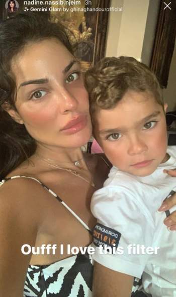 نشرت الممثلة اللبنانية نادين نسيب نجيم ثلاث صور عبر خاصية “الستوري” في صفحتها الرسمية على أحد مواقع التواصل الاجتماعي ظهرت فيها وهي تحمل ابنها جيوفاني.