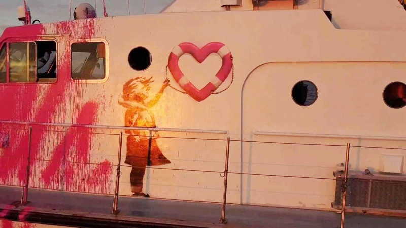 وزّينت السفينة التي أُطلق عليها اسم «لويز ميشيل» تيمناً بناشطة فوضوية فرنسية من القرن الـ19، برسوم غرافيتي للفنان البريطاني، وأبحرت في 18 أغسطس من ميناء بوريانا الإسباني قرب فالنسيا، وفقاً للصحيفة