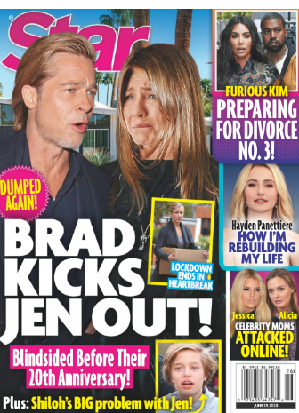 تصدر النجمان والزوجان السابقان جينيفر انيستون وبراد بيت غلاف مجلة star، تحت عنوان Brad Pitt Dumped Jennifer Aniston and k Kicked Her Out Of His House?، وحسب تقرير المجلة انه حدث خلاف بين الثنائي حيث يعيشان مع بعضهما، وان بيت لم يعد يتحمل الخلافات والمشاكل، واصبح يريد امراة اكثر سلاسة حتي لا يحدث ضجة في يومه، لذلك كان تصرفه الوحيد اتجاه افعال انيستون زوجته السابقة والتي تربطهما علاقة حب حاليا حسب ما نشرت المجلة، هو الطرد من المنزل .