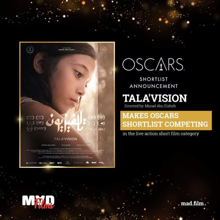 أعلنت أكاديمية فنون وعلوم الصور المتحركة المانحة لجوائز “الأوسكار”، عن اختيار الفيلم الأردني القصير “تالافيزيون” للمخرج مراد أبو عيشة، في القائمة القصيرة لفئة أفضل فيلم قصير، ليكون ضمن 15 فيلماً تنافس على الجائزة من بين 145 فيلماً تأهلوا في هذه الفئة، وجاءت مشاركته بعدما فاز بجائزة أفضل فيلم روائي في مسابقة جوائز الأوسكار الطلبة مسجلاً أول فوز عربي في هذه الفئة.