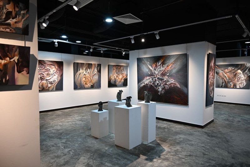 ويستمر المعرض 20 يومًا، ويحتوي على 30 لوحة فنية، تتمحور حول فكرة الانشطار، وتتضمن أعمالاً فنية لها أبعاد فكرية وروحية وتفتح أمام المتأمل نوافذ يحلق من خلالها في عوالم الكون.