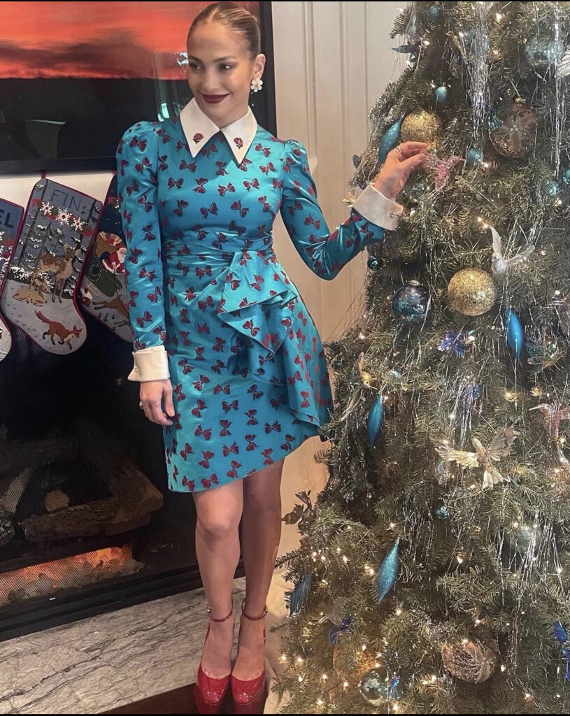 وفي صورة أخرى ظهرت لوبيز وهي تقف أمام شجرة الميلاد، حيث ذكرت جينيفر لاحقاً أنها ركزت موضوع وأسلوب عيد الميلاد هذا العام حول فكرة الطائر الطنان أو “Hummingbird”.