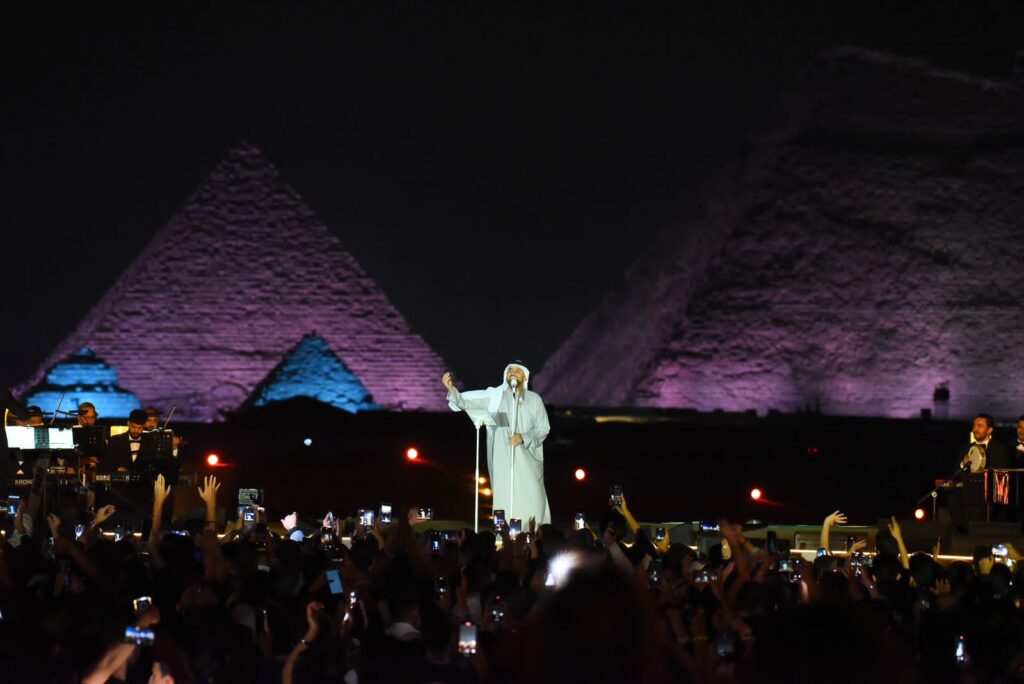 وسط حضور جماهيري كبير في حفل ضخم متميز بختام فعاليات الاحتفال بمرور 50 عاماً من العلاقات الإماراتية المصرية تحت شعار “مصر والإمارات قلب واحد”، أبدع وتألق “جبل الأغنية العربية” الفنان الإماراتي حسين الجسمي تحت سفح الأهرامات في الجيزة، وتنقل وسط أهازيج 7 آلاف شخص من الحضور، بين مجموعة من أشهر أغنياته، واصفينه قائلين: “حسين أنت هرم مصر الرابع”.