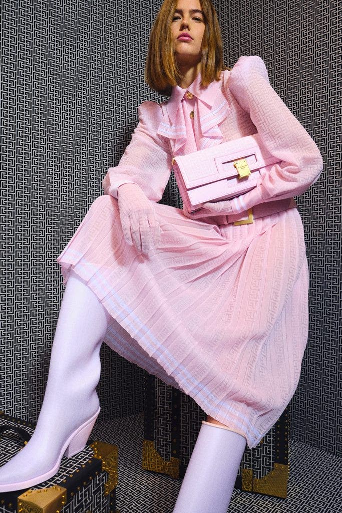 وهو يعتبر أنه يتوجه بها إلى فترة ما بعد انتشار لقاح كورونا وعودة الحياة إلى طبيعتها المعهودة.”المونوغرام” الجديد لدار Balmain الذي تمّ إطلاقه في مجموعة الدار لربيع 2021 تكرّر ظهوره في المجموعة التحضيريّة لخريف 2021 ليشمل الديكور والأزياء والأكسسوارات.