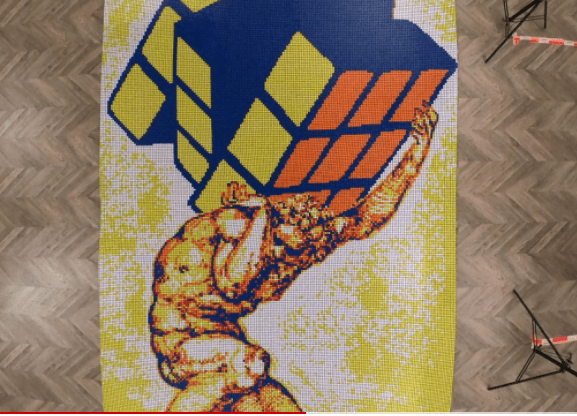 قال جيوفانى كونتاردى إن العمل الفنى يتكون من 6111 قطعة من الأحجية الملونة، وانه كان يحاول صنع أكبر فسيفساء من مكعبات الروبيك فى العالم فى غضون 24 ساعة .