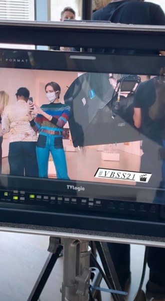 شاركت فيكتوريا بيكهام صورة سيلفى لها عبر خاصية الاستوري الخاصة بها على موقع تبادل الصور انستجرام، بدت مصممة الأزياء البالغة من عمر حوالى 46 عاما أنيقة مثل أي وقت مضى، وهى ترتدى بنطلون أزرق ذى خصر عال، يحتوي على جيوب بلون داكن مختلف عن لون البنطلون، مع توب مخطط يحمل العديد من الألوان كاللون الأحمر والازرق والاخضر مع الرمادى الغامق وحزام عريض يحمل اللون الجملى وأثناء قيامها بعمل بروفات استعدادا للعرض التقديمي بأسبوع الموضة في لندن، بدت فيكتوريا بمظهر أنيق للغاية، وكشفت فيما بعد عن أقراط دائرية ذهبية تتزين بها وقلادة مطابقة من تيفانى كانت أيضا جزء من ملابسها.وعلى الرغم من أن هذا العام كان العرض مختلف تماما في أسبوع الموضة في لندن “LFW” بسبب الحد من انتشار فيروس كورونا ولكن لم تسمح فيكتوريا أن يؤثر ذلك على فريقها الرائع.