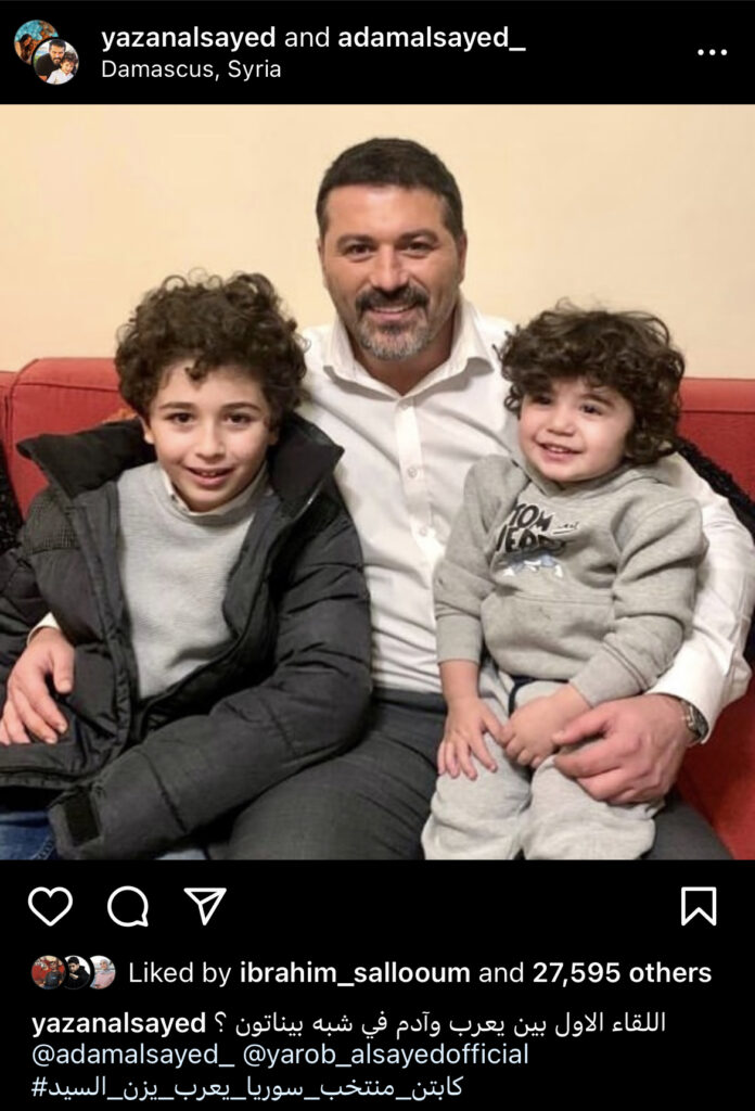 ونشر يزن السيد صورة تجمعه بولديه، إذ أن آدم كان على يمينه، ويعرب على يساره وأرفقها بتساؤل لجمهوره ومتابعيه.