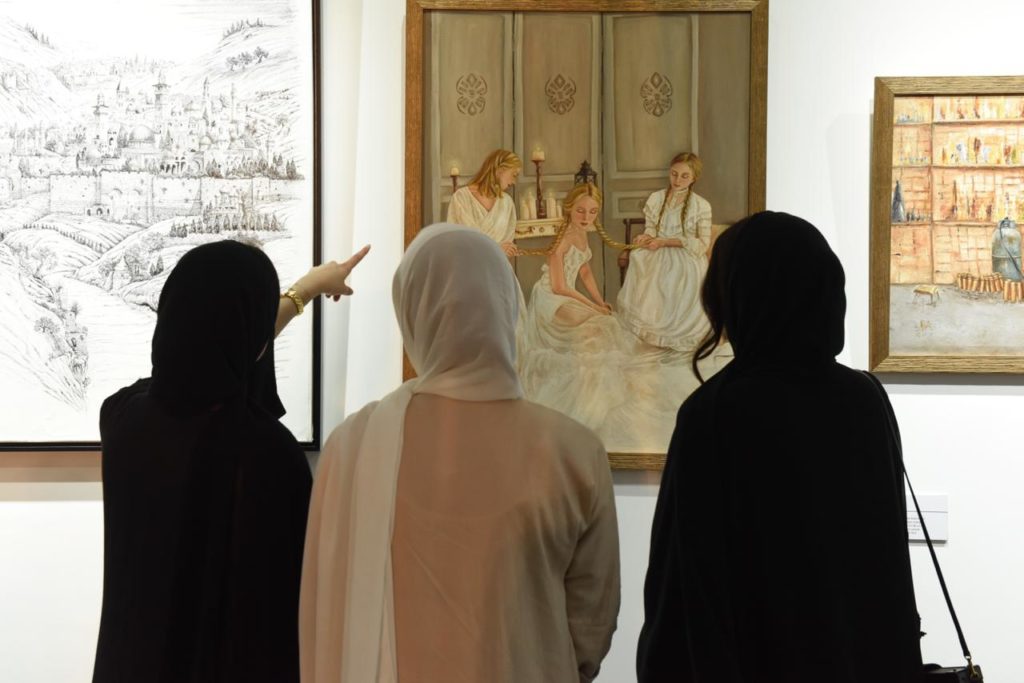 ومن السعودية جسدت الفنانة نجلاء الغفيلي حبها للتراث برسم امرأة ترتدي الزي العربي، ومن العراق شاركت الفنانة ندى الهاشمي بلوحات تجريدية لم تفصح عن مغزاها وتركت للمتلقي الغوص في اللوحة مستخدمة آلة السكين في الرسم.